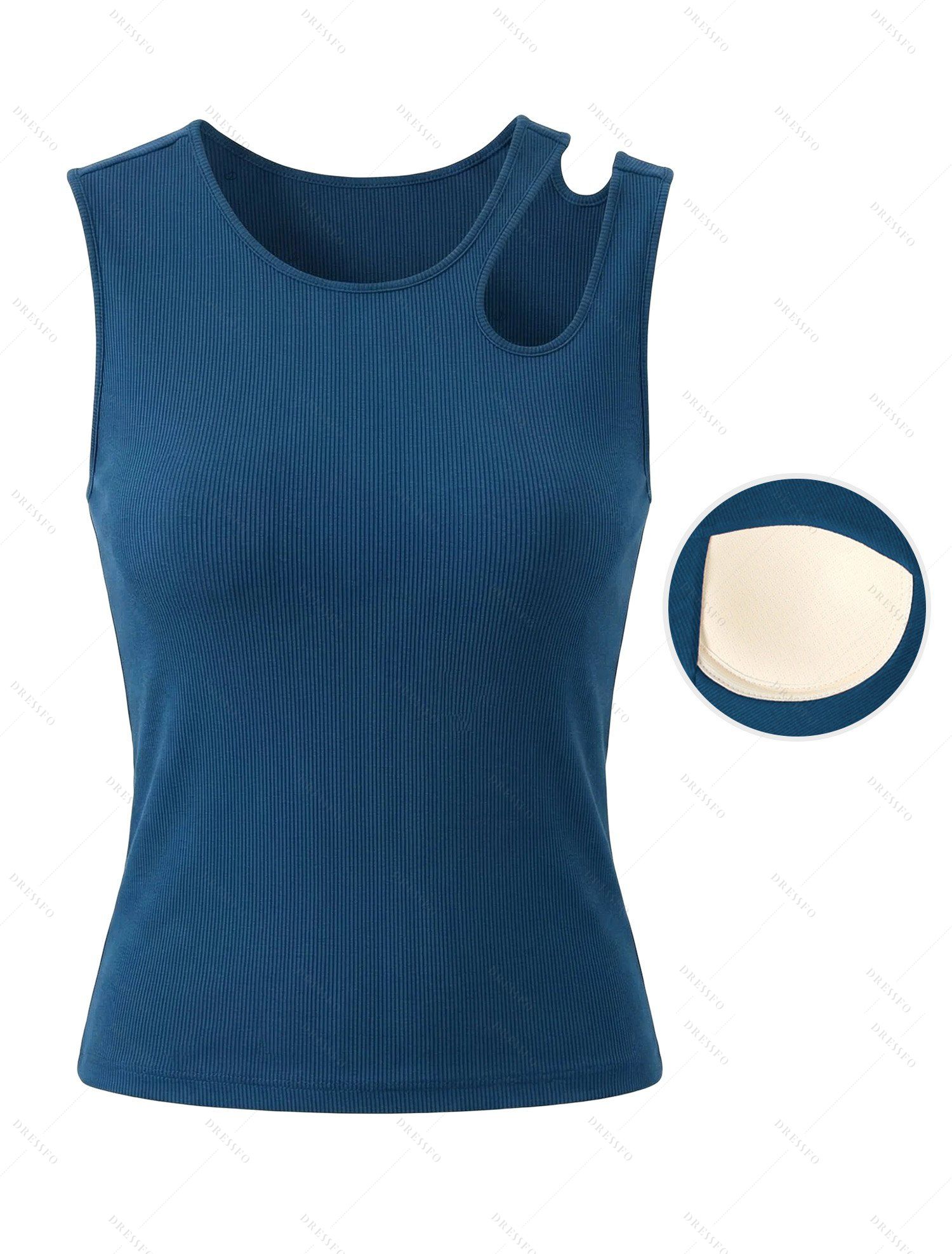 Solid Color Tank Top Cut Out Padded Cropped Tank Top