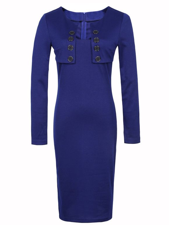Solide Couleur Splicing Skinny Robe - Bleu Violet XL