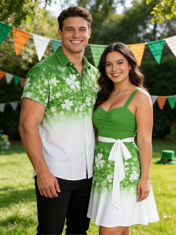 St. Patrick's Day Lucky Clover Print Belted Mini Dress And Short Sleeve Shirt Matching Outfit - Vert S | US 4 HOT Flower Print Ruched Bust Belted St. Patrick's Day Dress And Short Sleeve Shirt Matching Outfit Ombre Lucky Clover Print St. Patrick's Day Mini Dress And Short Sleeve Shirt Matching Outfit St. Patrick's Day Lucky Glassed Print A Line Mini Dress And Short Sleeve Shirt Matching Outfit St. Patrick's Day Lucky Glasses Light Spots Print Asymmetric Hem Midi Dress And Short Sleeve Shirt Matching Outfit