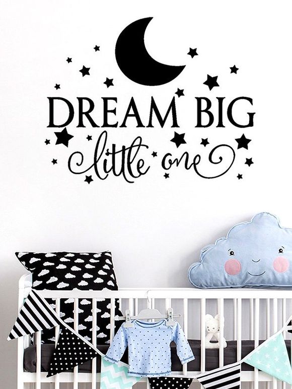 Autocollant Mural Lune et Citation Imprimées - Noir