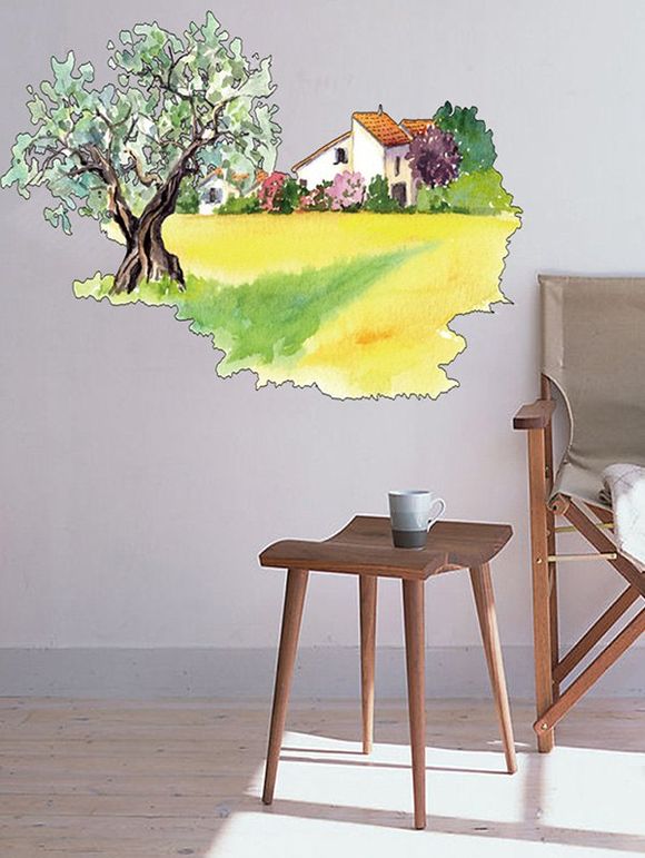Autocollant Mural Maison et Arbre Imprimés - multicolor