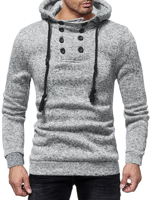 Sweat à Capuche en Tricot Motif Teinté avec Bouton à Cordon - Gris S