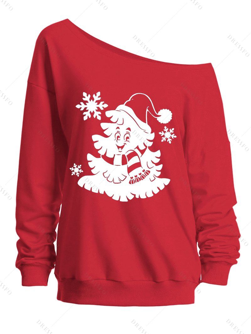 Sweat-shirt de vacances Bonhomme de neige avec chapeau de Noël Imprimé flocon de neige Sweat-shirt à col incliné - Rouge XXL | US 14