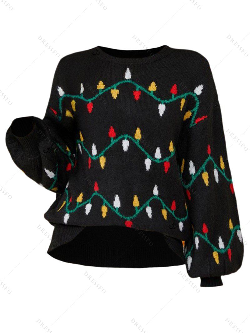 Sweat-shirt de vacances à manches lanternes et imprimé sapin de Noël - Noir XL | US 10