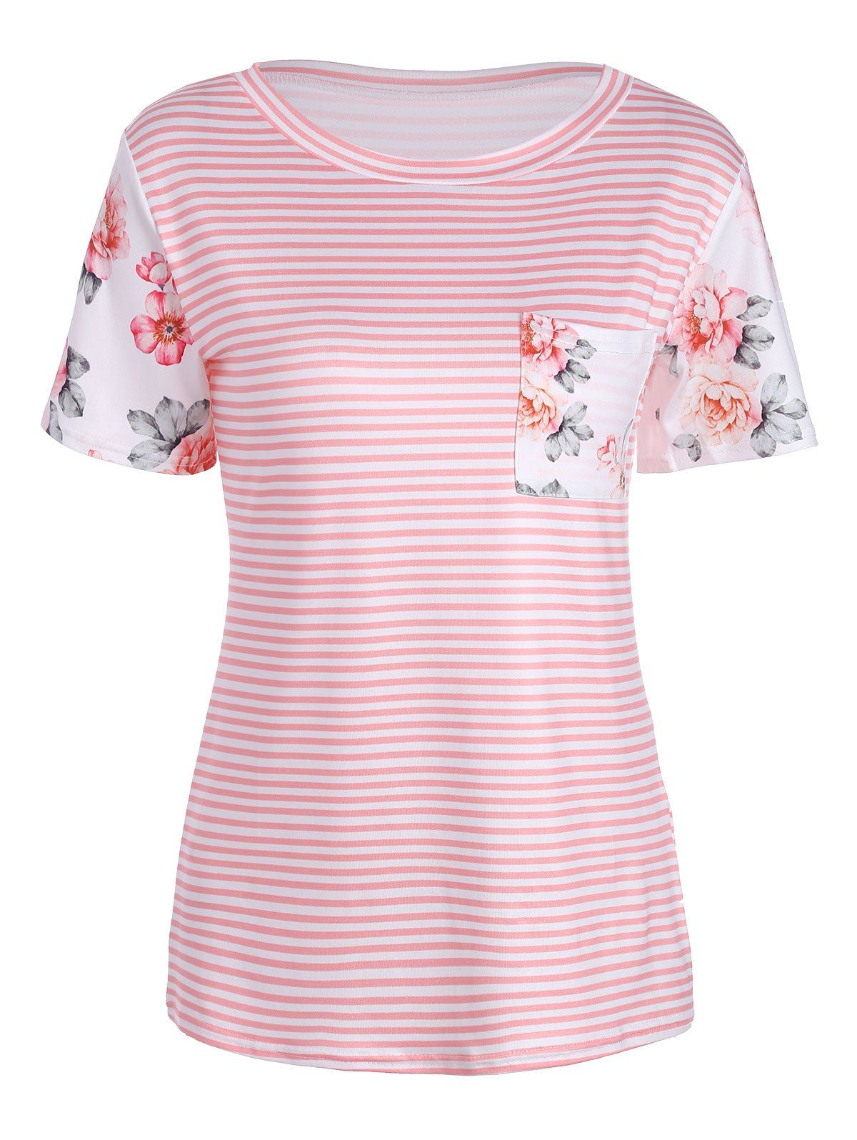 Le T-shirt floral et rayé présente une poche fleur avant et un cou rond. Les manches de fleurs et la conception de la poche avant distinguent entre la bande, donnent à une personne une sorte de sentiment élégant sur la vision; Le cou rond n'est pas proche de votre cou, que vous ne vous sentirez pas restreindre. Le tissu a l'élasticité, si vous voulez porter le lâche, peut acheter une taille plus grande que d'habitude, c'est très confortable et doux au toucher, adapté pour vous en été