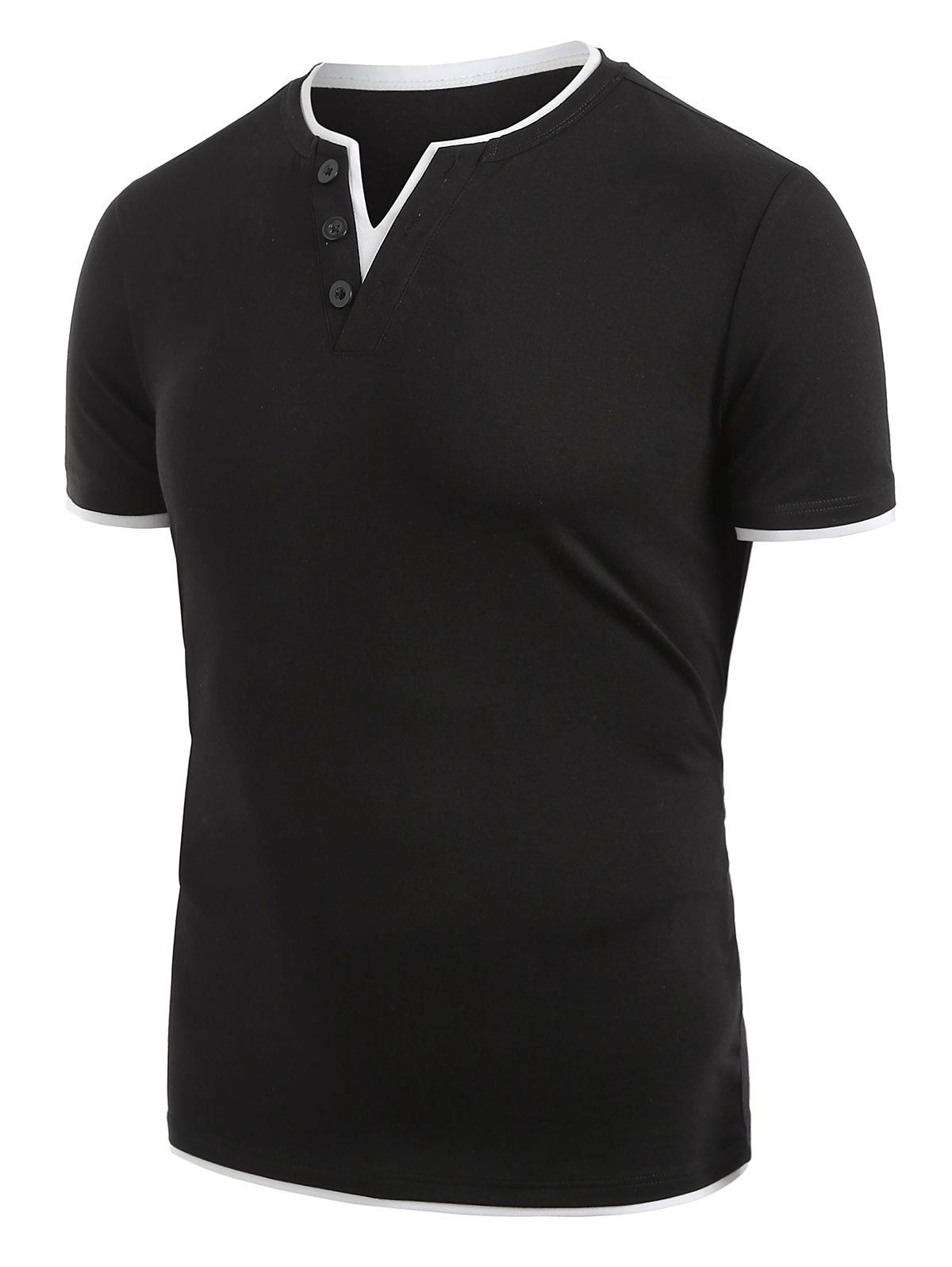 T-shirt Bicolore à Col Cranté - Noir 2XL