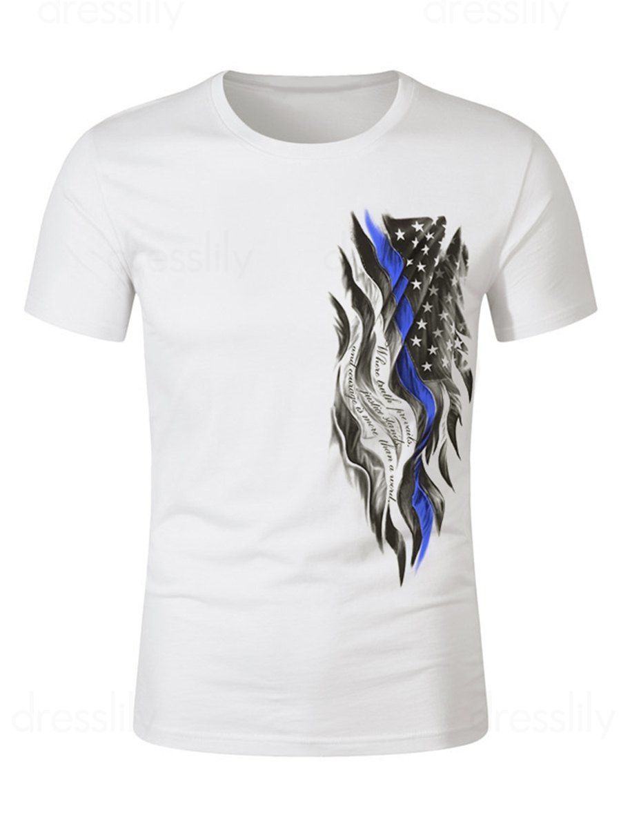T-shirt Décontracté à Imprimé Drapeau Américain Manches Courtes à Col Rond