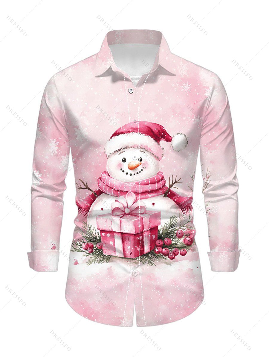 T-shirt de Noël pour homme, imprimé bonhomme de neige et flocon de neige, tie-dye, manches longues - Rose 5XL