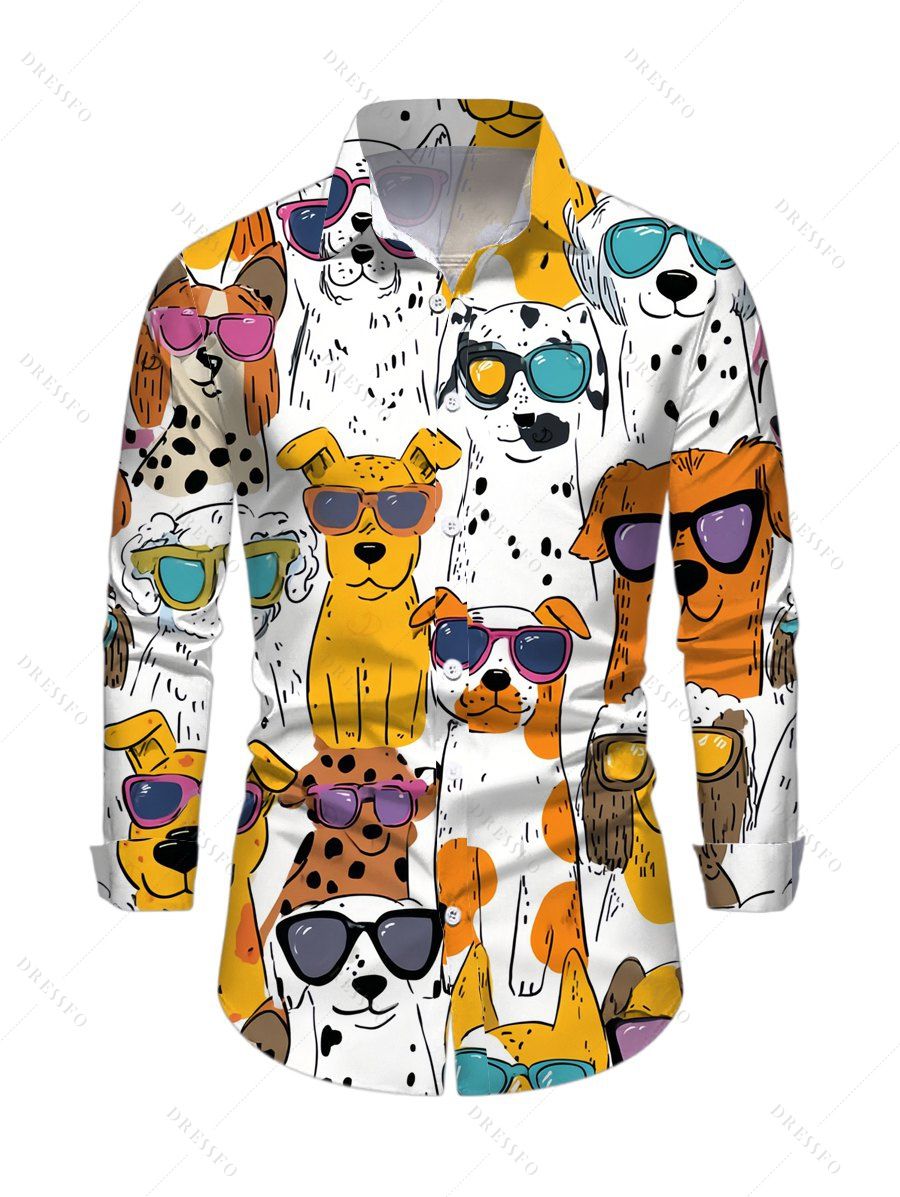 T-shirt humoristique pour homme, imprimé chien avec lunettes de soleil, manches longues - Jaune 5XL