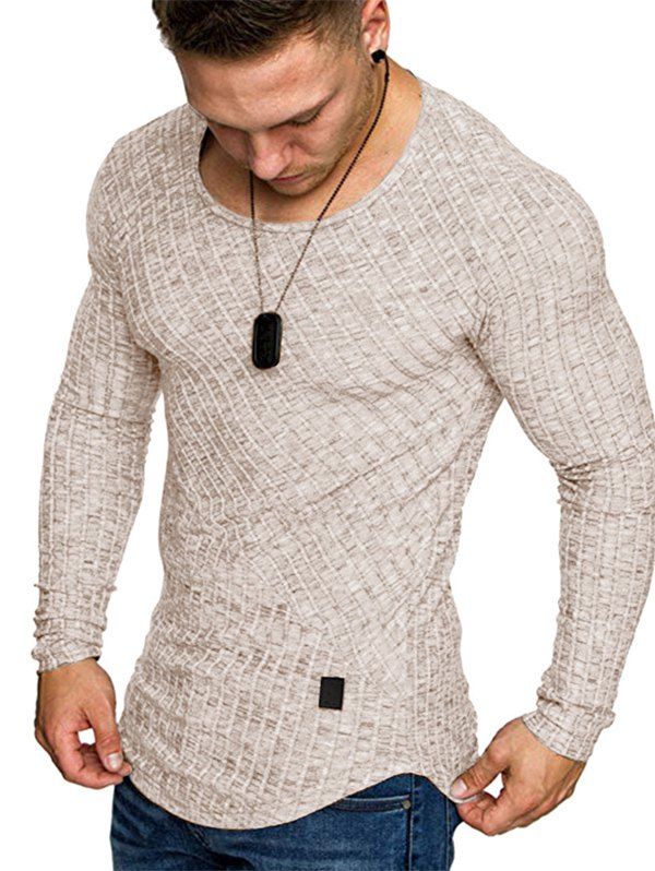 T-shirt Rayé en Couleur Unie à Manches Longues