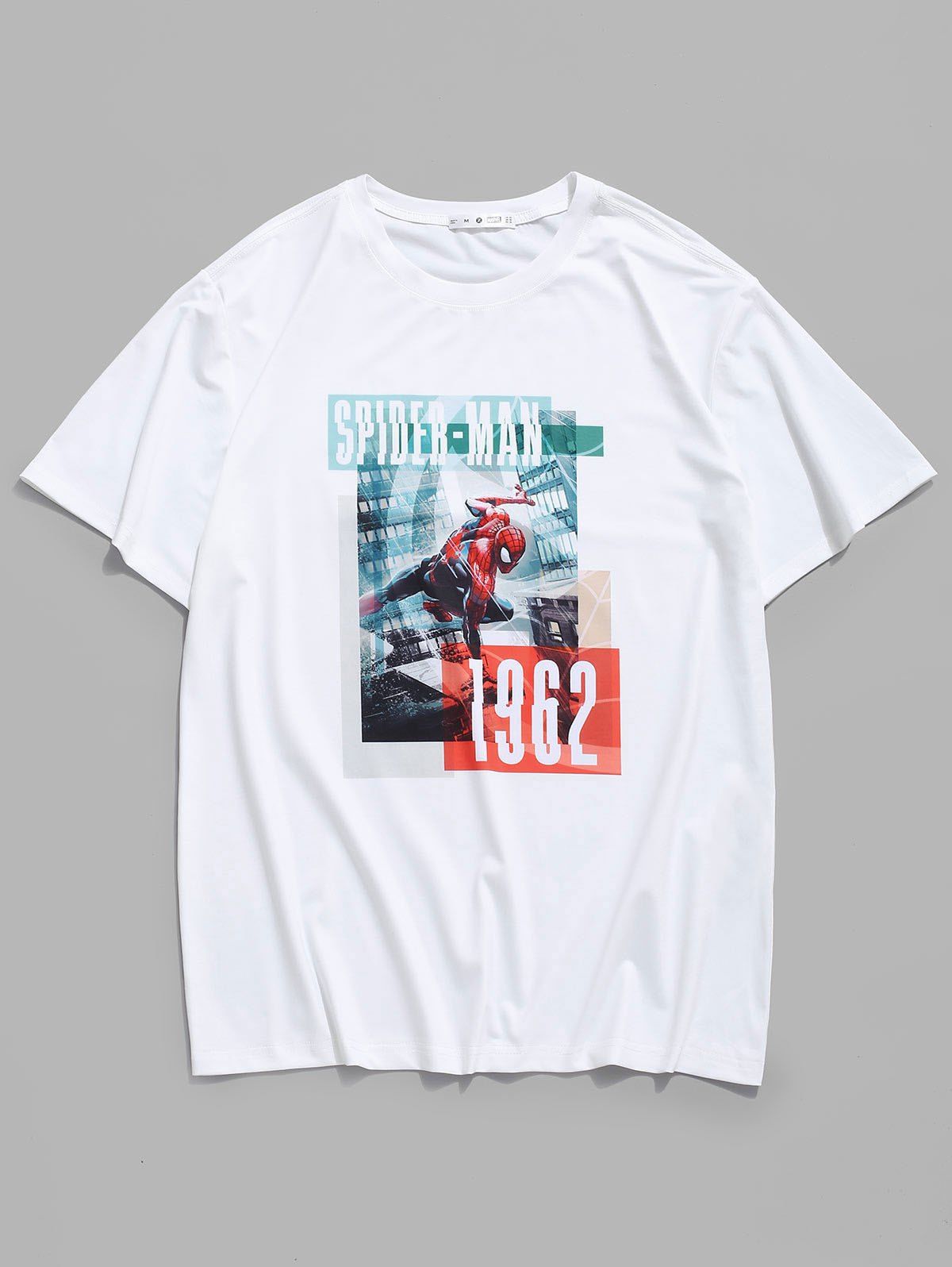 T-shirt à Imprimé Marvel Spider-Man et Photo de Ville - Blanc S