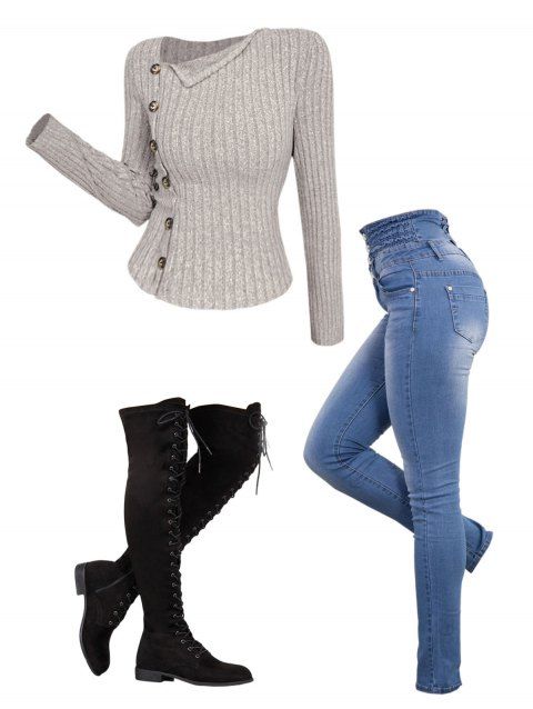 Pull décontracté à col plongeant et boutons imitation corne de couleur contrastée