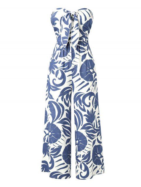 Combinaison de vacances à jambes larges, imprimé floral et fines bretelles drapées