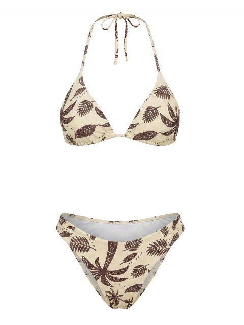 Ensemble de maillot de bain bikini de vacances, dos croisé, imprimé cocotier, bas froncé
