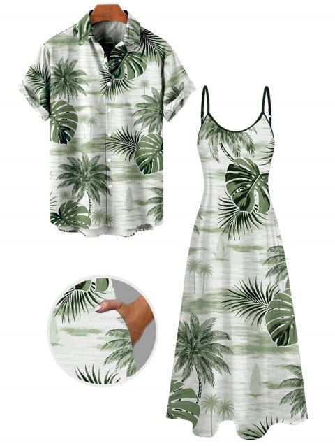 Chemise de vacances pour homme à manches longues avec imprimé de feuilles de cocotier ombré