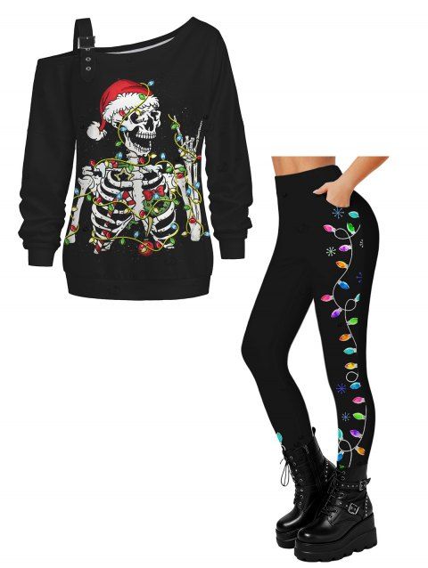 Leggings de Noël Leggings skinny à imprimé Père Noël, élan, flocon de neige et blocs de couleur