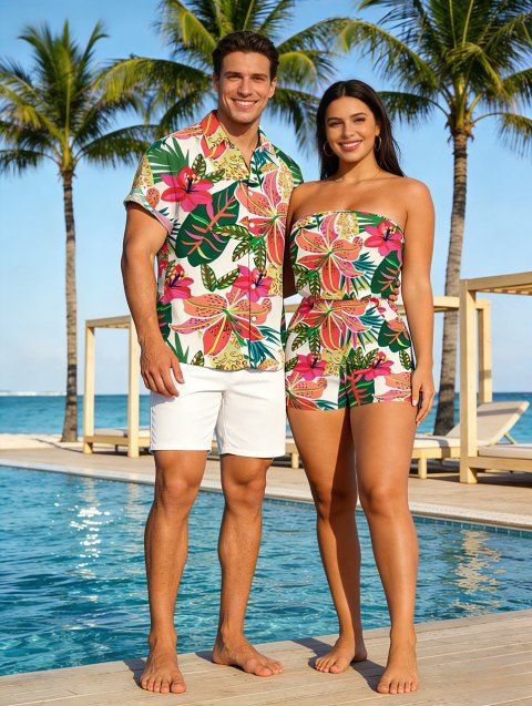Ensemble ethnique imprimé fleurs et feuilles géométriques : haut ouvert sur le devant et short.