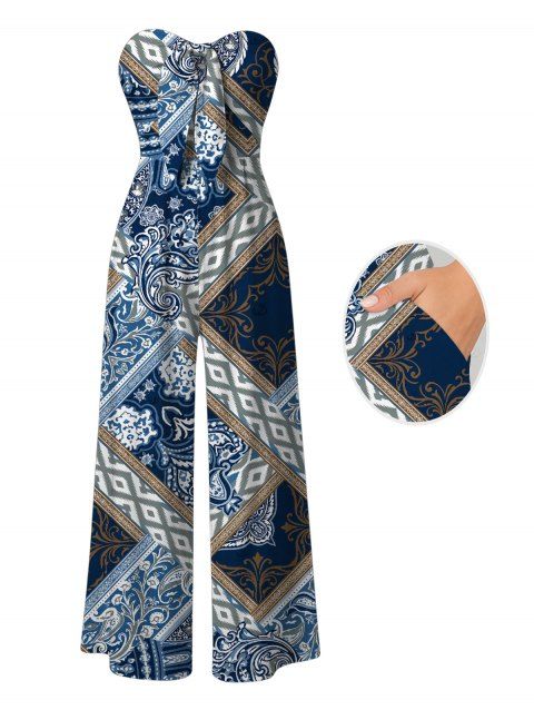 Robe de vacances à imprimé floral hibiscus et feuilles tropicales colorblock, buste froncé