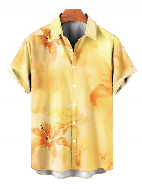 Chemise de vacances pour homme, style frais, imprimé floral lys et feuilles, à boutons