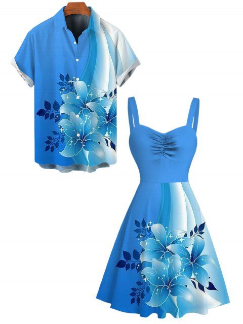 Chemise de vacances pour homme à imprimé floral lys papillon ombré, chemise boutonnée