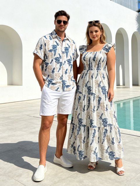 Chemise de plage pour homme, imprimé cocotier ombré, boutonnée