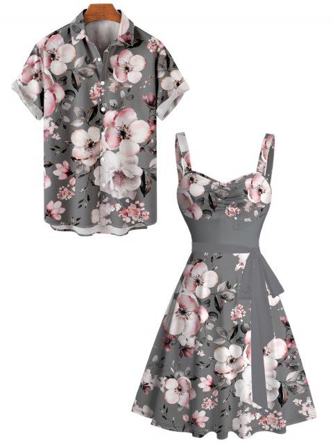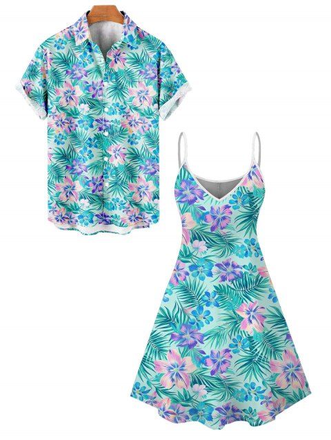 Chemise de Vacances Fleur Imprimée en Blocs de Couleurs Boutonnée à Manches Courtes