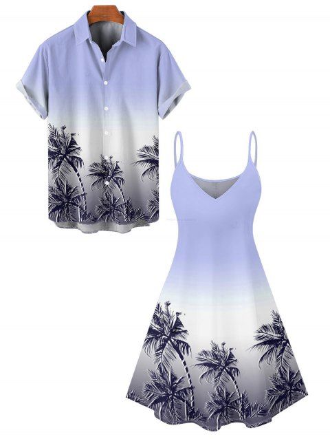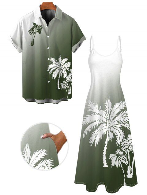 Chemise boutonnée à imprimé cocotiers ombré pour homme, idéale pour les vacances à la plage