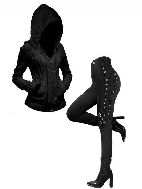 Leggings gothiques à lacets et œillets, pantalon long skinny