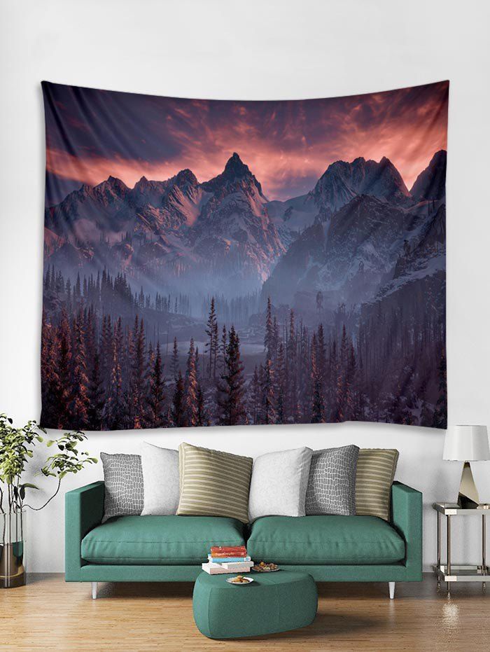 Tapisserie Décoration Murale Montagne Neige et Coucher du Soleil Imprimés - Pourpre W79 X L59 INCH