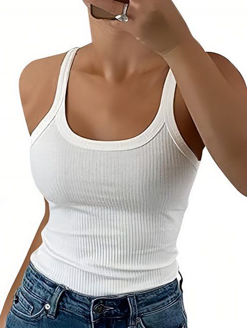 Débardeur Long Décontracté Texturé à Bretelle Anneau en O à Col Rond en Couleur Unie