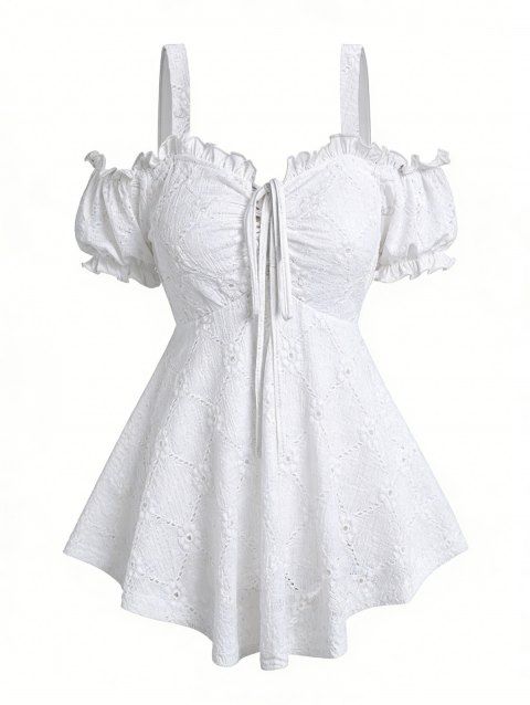 Solid Color Tank Top Geometric Hollow Out Ruffle Puff Sleeve Tied Cold Shoulder Tank Top