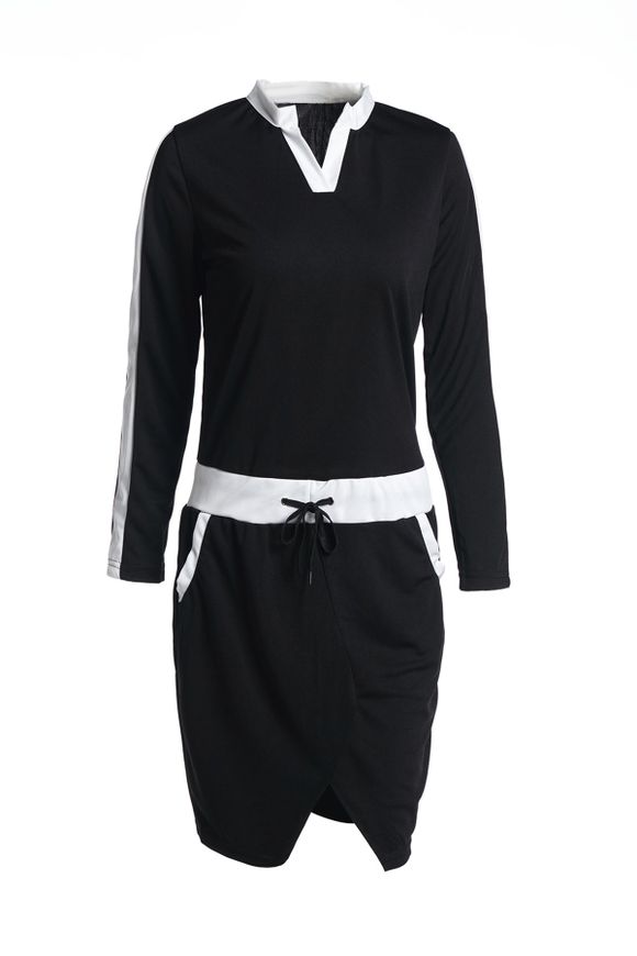 Trendy à manches longues col en V Drawstring Color Block femmes s 'Robe moulante - Noir M
