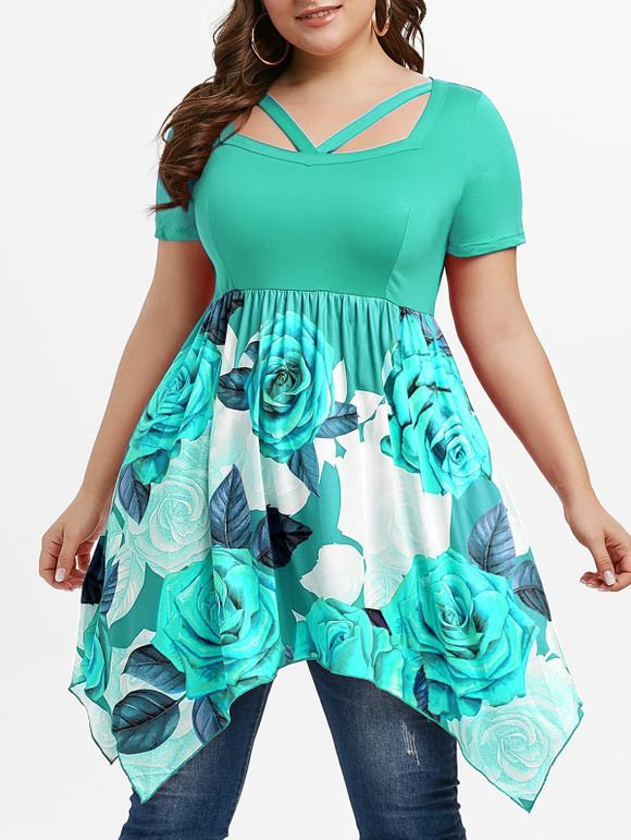 Haut Mouchoir Fleuri à Bretelle en V de Grande Taille - Vert 2X