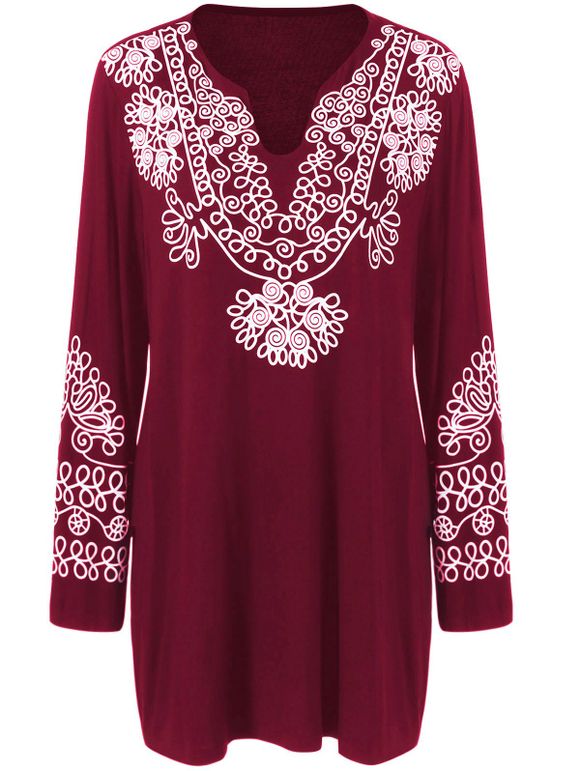 Veste longue imprimée à grande taille - Bourgogne XL