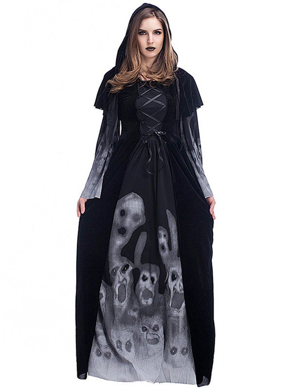 Women's Skull Witch Long Vampire Suit Dress Costume - Crâne L