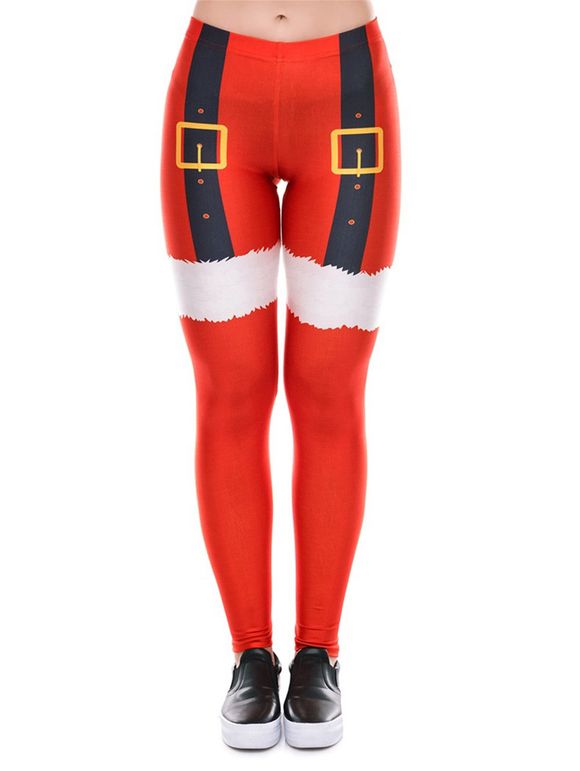 Womens  Santa Christmas Leggings Funny Costume Tights - Rouge S