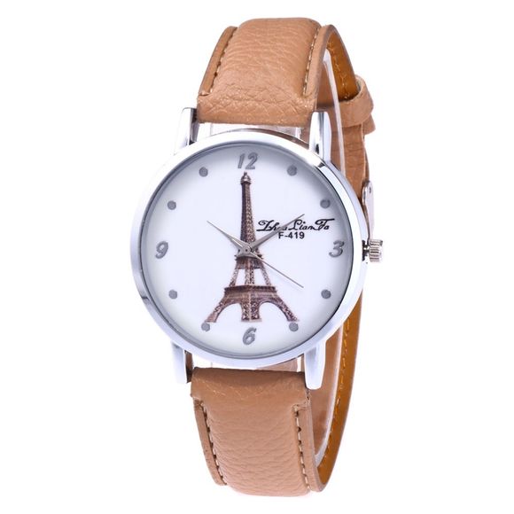 ZhouLianFa Nouvelle Mode Tendance Lai Chi Motif Bracelet en Cuir D'affaires Casual Ladies Quartz Montre - Beige