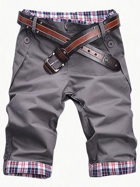Zip Casual Fly Plaid Cuff Cinq pantalons pour hommes