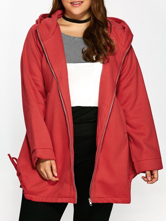 Zipper capuche vol Drawstring Cape Jacket - Rouge ONE SIZE